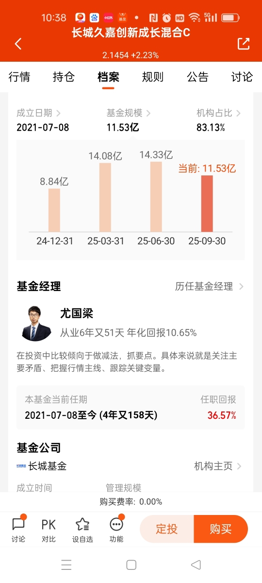 我的$长城久嘉创新成长灵活配制$,代码:010052,尤国梁经理非常的棒,业绩很好,这样的经理才会受到投资者的追捧。