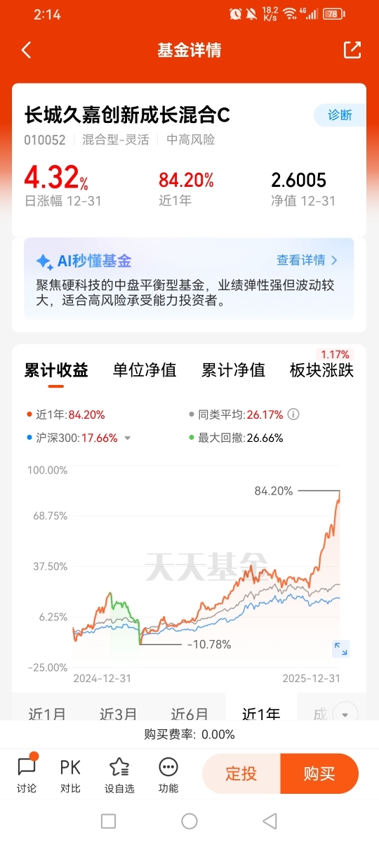 当政策红利持续释放、技术突破不断涌现、资本热度加速集聚,商业航天正从遥远的“星辰大海”变为触手可及的投资风口。上交所科创板新规为核心技术型商业火箭企业打开上市通道,可复用火箭技术突破推动行业降本增效,叠加SpaceX 2026年IPO的资本催化,商业航天板块掀起跨年狂欢潮,成为全市场绝对领涨主线。在这一历史性机遇下,长城久嘉创新成长混合C(010052) 凭借精准的赛道布局、亮眼的业绩表现与专业的管理能力,成为捕捉商业航天成长红利的优质选择,我将坚定持有并持续配置。