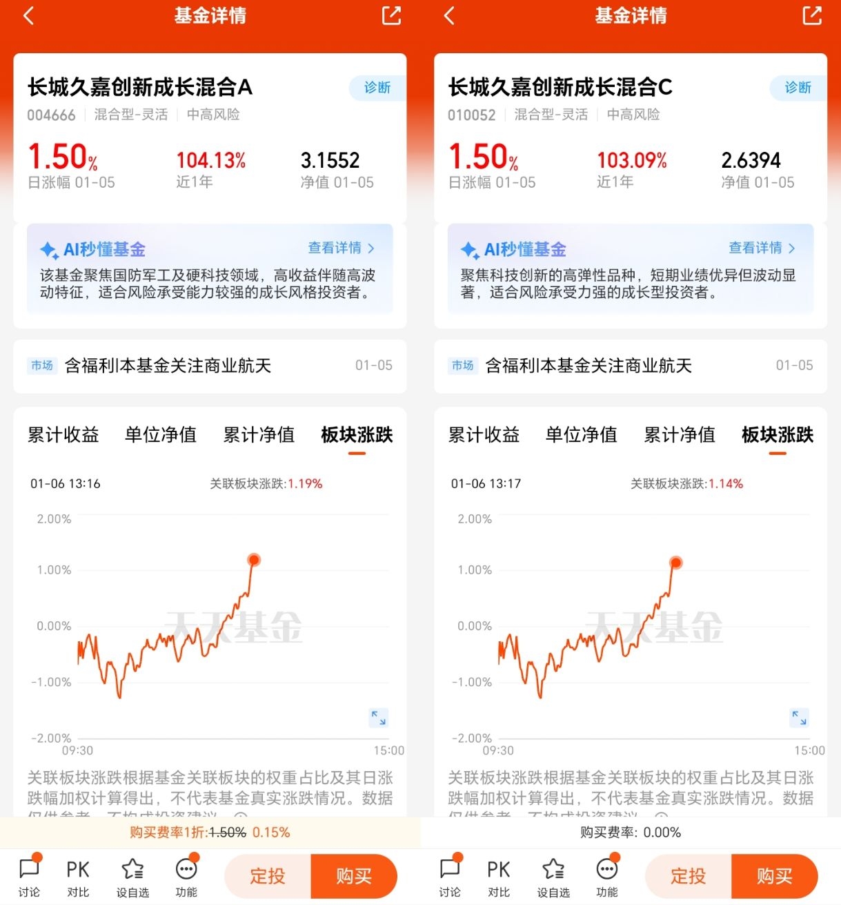 再看这只基金,长城久嘉C近一年涨幅达103.09%,还超越基准收益率51.24%(数据来源:基金定期报告),光看这个数据就够亮眼的。更关键的是它精准押注商业航天这条主线,不像有些科技基金赛道铺得太开,反而抓不住核心机会。对于我们这种想布局商业航天,但又没精力研究个股的普通投资者来说,选这样一只聚焦赛道的基金,相当于站在专业机构的肩膀上参与行业红利。