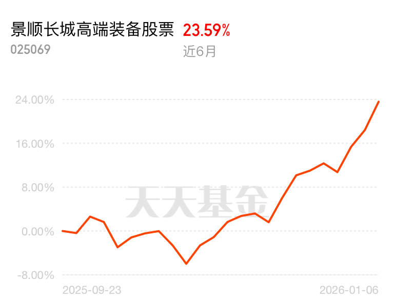 低轨卫星互联网建设提速,商业航天板块热度不减,景顺长城高端装备股票近 1 月 24.99% 业绩不俗。昨天涨得比同类都快,卫星产业、计算机等核心领域全覆盖,近一月排名优秀,产业趋势向好,今天回调赶紧加仓。