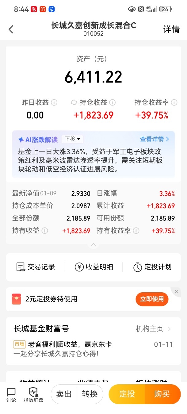 $长城久嘉创新成长混合C[010052]$ 尤国梁经理不愧是资深科技先锋,赛道研判和仓位把控能力超级优秀,我持有长城久嘉创新成长混合C以来涨了39%,持仓一个月。