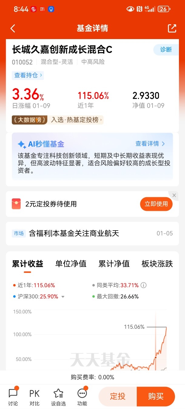 $长城久嘉创新成长混合C$尤国梁经理不愧是资深科技先锋,赛道研判和仓位把控能力超