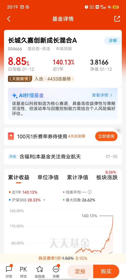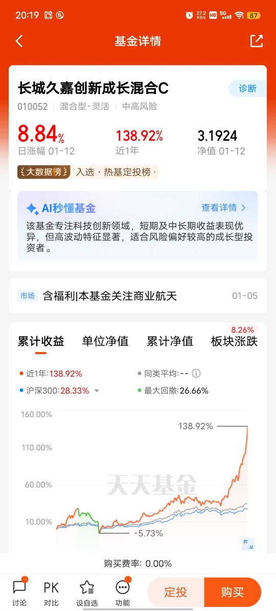 大家好!今天来唠唠我对长城久嘉创新成长混合A/C(004666)(010052)在商业航天板块的投资心得和体验。