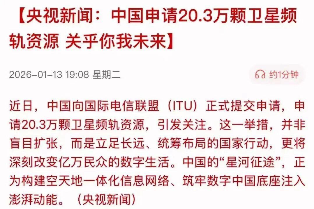 我的信心,首先来自于一个再明显不过的趋势:商业航天已经不仅仅是一门生意,它更是一场关乎未来战略空间与数字主权的“近地轨道圈地运动”,背后是清晰的国家意志。进入2026年,这个领域接连传来重磅消息。最引人瞩目的莫过于马斯克在社交媒体上确认,SpaceX有望在2026年进行首次公开募股。多方报道指出,这次IPO的目标估值可能高达1.5万亿美元,募资规模预计超过300亿美元,一旦成功,将成为人类有史以来规模最大的IPO。这不仅仅是一个公司的上市,更是一个时代的资本宣言。同时,他的“星链”(Starlink)计划已经发超过一万颗卫星,并计划最终构建一个总计约四万两千颗卫星的巨型星座。这就像大航海时代初期,谁先占领了关键航道和港口,谁就掌握了贸易的命脉。根据《外层空间条约》,轨道和频谱资源遵循“先登先占”的原则,资源是有限的。在星链已经大规模抢占先机的情况下,如果我们不加快自己的低轨星座建设,未来的民用通信、气象监测、导航定位等关键领域都可能受制于人。