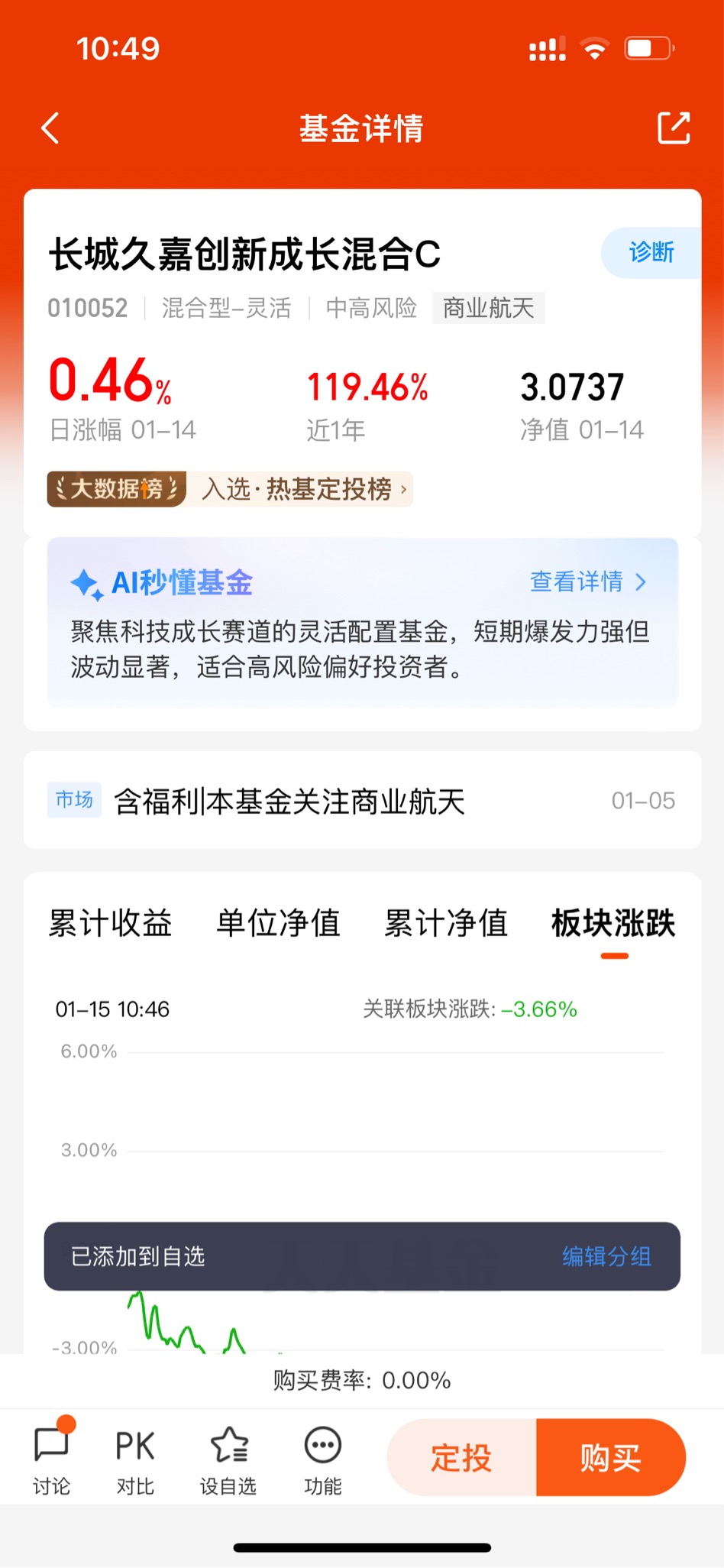 这次活动直接把A/C都塞进自选了,心得很实在:成长型基金不用慌短期波动,盯着行业政策和技术进展,逢调整布局、拿住优质标的,吃到行业红利是真的香,接着等商业航天的后续行情~@长城基金