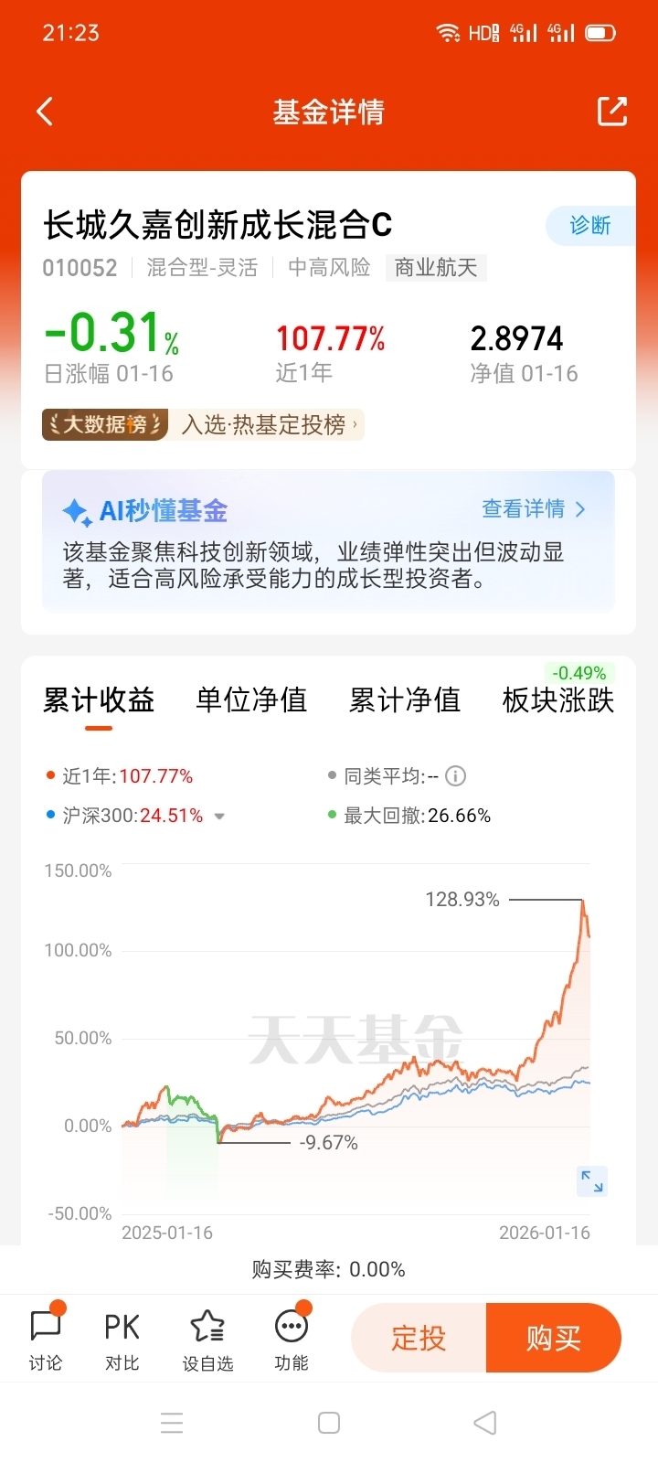 从业绩表现来看,长城久嘉创新成长混合C堪称优秀。截至2026年1月13日,该基金近一年净值增长率高达127.69%,近三年增长率也达到了126.61%,在同类基金中排名靠前。其单位净值已攀升至3.0737元,累计净值更是达到了3.3229元,显示出强劲的增长势头。