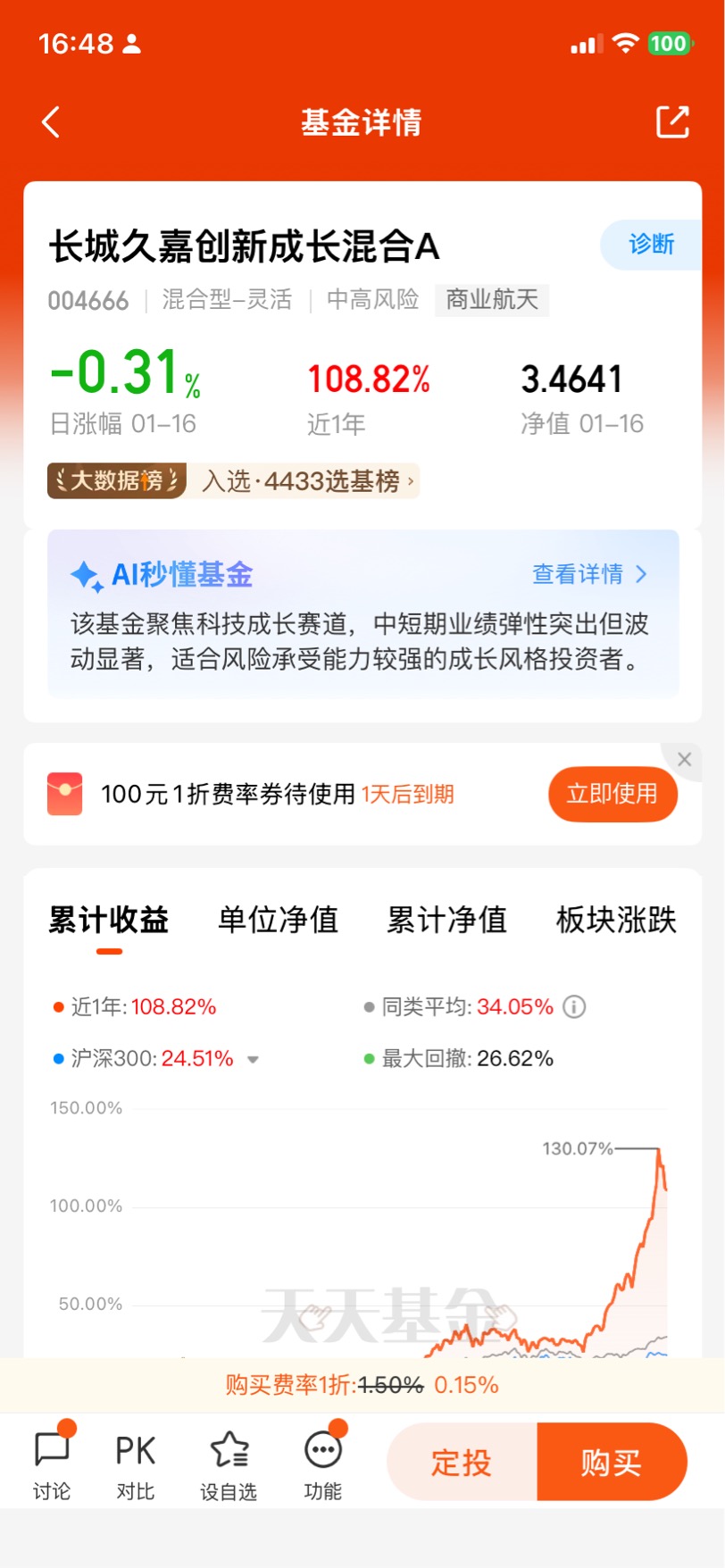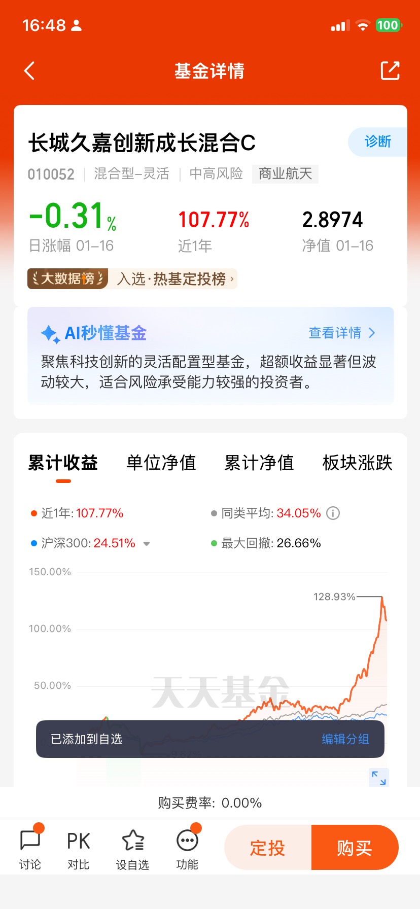 #商业航天嘉速启航# 非常强势的商业航天板块,下半周出现震荡回调,个人认为是倒车接人的好机会,下周开启定投$长城久嘉创新成长混合A$ ,这只基金聚焦商业航天赛道,近三个月收益回报58.9%,在2319只同类基金中排名第1,非常优异!@长城久嘉尤国梁 经理从业6年以上,善于把握行情主线,给广大持有人带来了很好的超额收益回报!