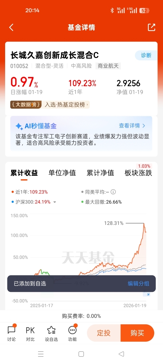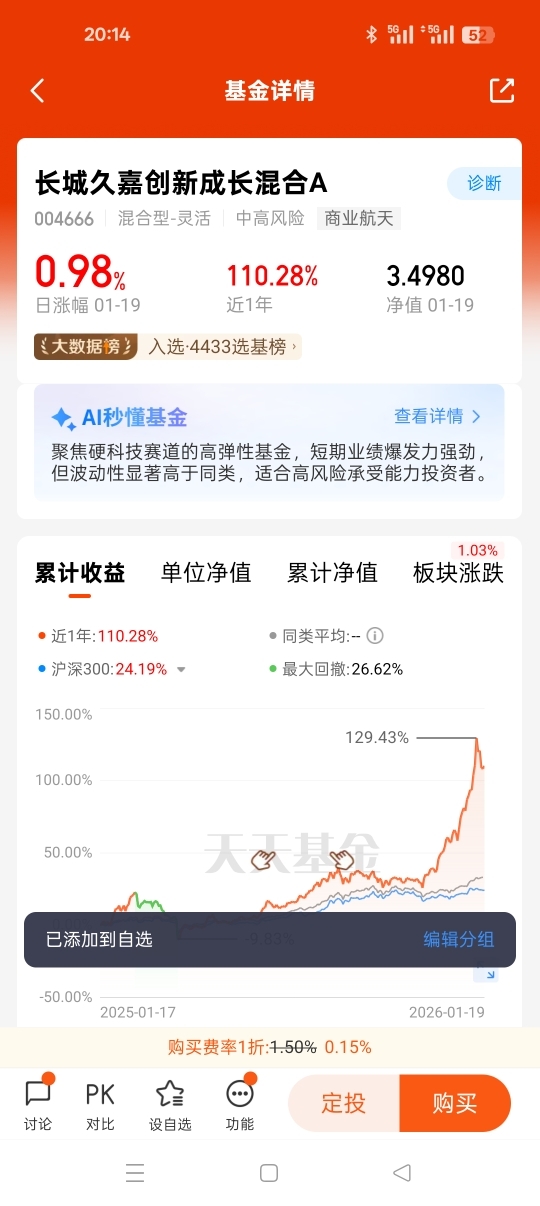 #商业航天嘉速启航# 在科技自立自强的国家战略指引下,商业航天作为战略性新兴产业,正迎来资本、技术与需求的三重爆发。2026年开年,板块行情的持续升温与资金的密集涌入,印证了市场对这一赛道的强烈看好。$长城久嘉创新成长混合C$基金深耕商业航天领域,精准把握政策放开未盈利硬科技企业上市、低轨频谱资源稀缺的行业机遇,以专业的投研布局与亮眼的业绩表现,成为长期投资者配置科技成长赛道的核心选择。