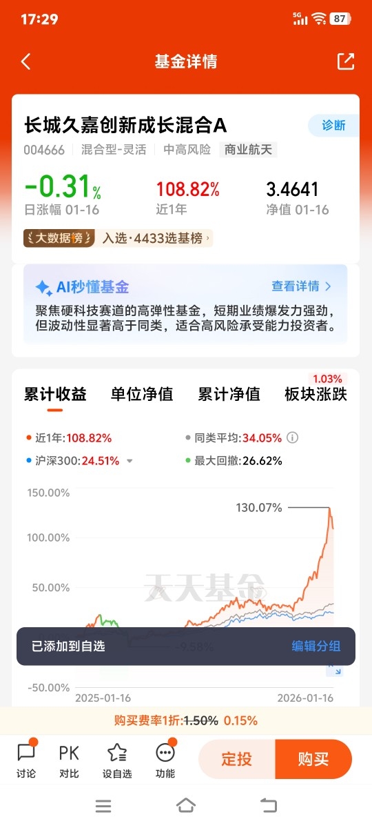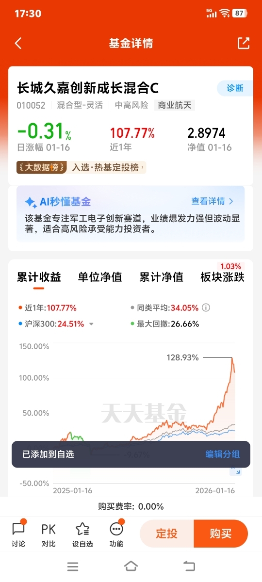 #商业航天嘉速启航# 商业航天正从“星辰大海”的愿景变为确定性投资风口,$长城久嘉创新成长混合C$ (010052)凭借对这一赛道的前瞻性布局,交出了亮眼业绩答卷。截至2026年1月,该基金近12个月涨幅高达107.77%,近6个月涨幅83.95%,在同类基金中脱颖而出,其背后是政策、技术、资本三重共振的产业红利加持。