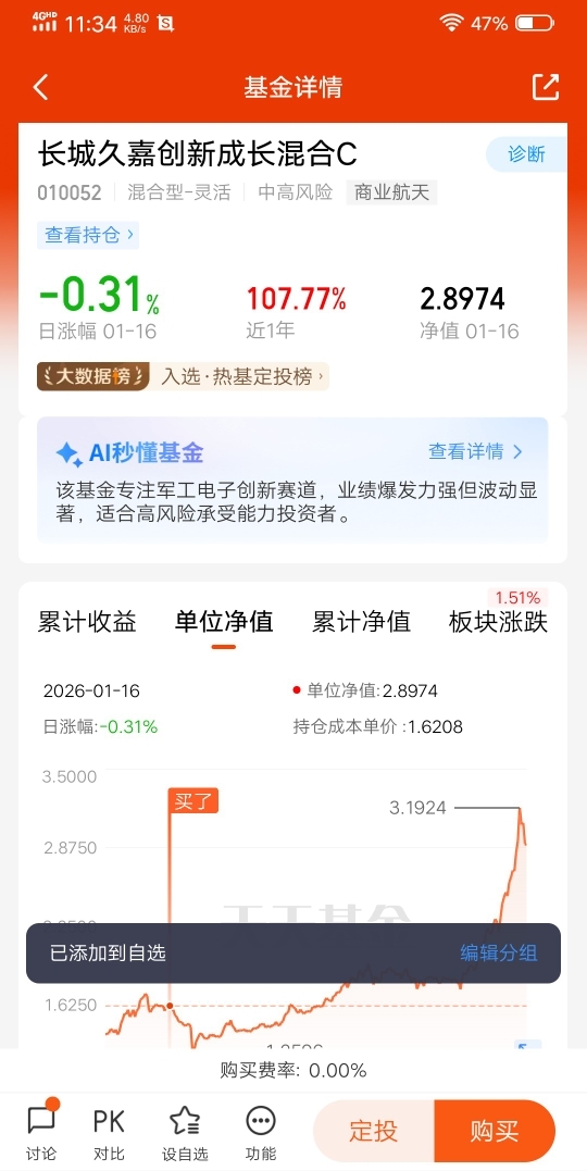 #商业航天嘉速启航#在投资领域,选择一只合适的基金如同挑选一艘稳健航行的巨轮,既能抵御风浪,又能捕捉机遇。近期,随着商业航天板块的强势崛起,分享一些我对$长城久嘉创新成长混合C$ 这只基金的投资逻辑与实战表现。
