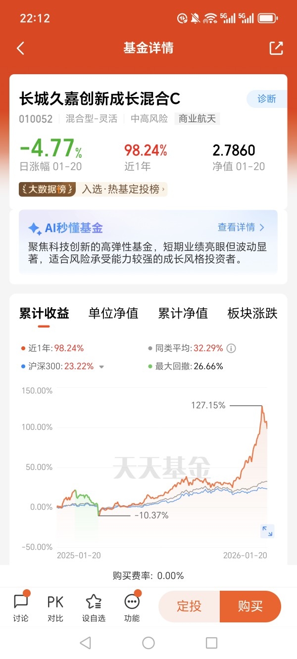 #商业航天嘉速启航# 政策持续加码,火箭、卫星技术不断突破,商业航天正从“讲故事”走向“出业绩”。我坚持长期布局$长城久嘉创新成长混合C$,航天是高门槛、长周期赛道,我愿意用耐心换取未来从1到N的爆发空间。商业航天作为国家战略新兴产业,正迎来政策与技术双重红利释放期。从政策层面看,国家航天局设立商业航天司,明确推进高质量安全发展行动计划,上海、海南等地出台专项政策支持产业链建设,科创板第五套标准为未盈利的火箭企业打开融资通道,政策红利持续释放。技术端,可回收火箭回收成功率已达92%,发射成本较2023年下降35%,卫星制造周期缩短至28天,液氧甲烷发动机量产推动燃料成本降低40%,技术突破显著降低商业化门槛。应用场景加速拓展,卫星互联网组网进入高频期,千帆星座、GW星座加速部署,太空旅游、生物制药等新兴领域进入验证阶段,产业链价值从制造端向应用端延伸。商业航天市场规模预计2030年达8万亿元,年均复合增长率超20%,行业处于从“能力建设”向“价值创造”跨越的关键阶段。长城久嘉创新成长混合基金精准捕捉这一趋势,其核心优势在于聚焦硬科技赛道。基金经理尤国梁擅长捕捉产业拐点,2024年二季度重仓国博电子、源杰科技等商业航天核心标的,精准布局火箭制造与卫星通信领域。基金近一年净值增长率达107.77%,远超同类平均,夏普比率优于53%的同类产品,展现出高弹性特征。投资策略上,基金采用“自上而下”与“自下而上”结合,动态调整仓位,在军工与科技领域灵活切换。历史业绩显示,其近三年最大回撤控制优于行业均值,2025年二季度利润增长超140%,验证了选股能力与风控水平。当前商业航天估值处于历史中低位,核心标的PEG低于1,叠加政策催化与订单放量预期,基金有望持续受益于行业与个股共振。