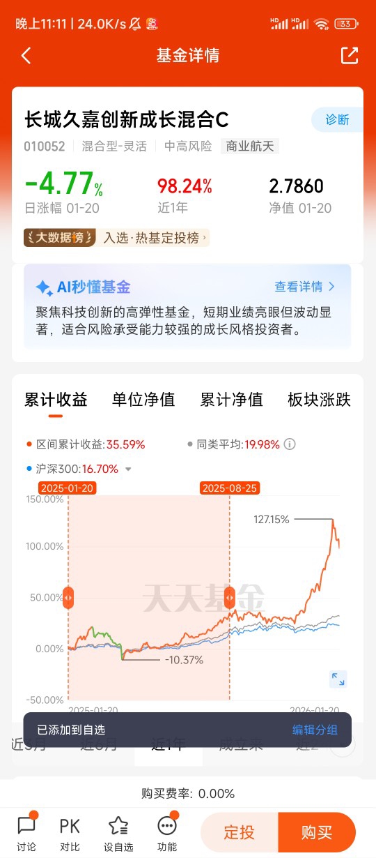 如果你看好商业航天的长期前景,且能够承受一定的短期波动,那么长城久嘉创新成长混合C(010052)或许是2026年基金组合$长城久嘉创新成长混合C$ 中值得重点关注的标的。不妨结合自身的风险承受能力与投资目标,合理配置这只基金,与商业航天行业共成长!@长城基金