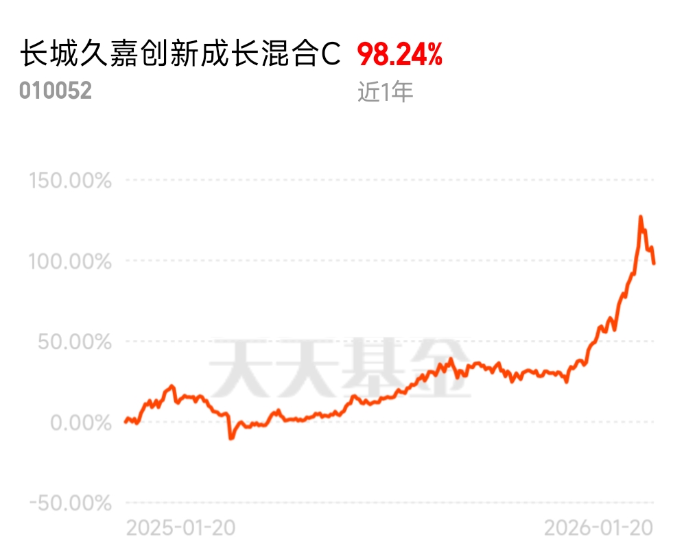 从最新数据来看,截至2026年1月20日,基金单位净值为2.7860,尽管当日出现4.77%的回调,但短期波动并未掩盖其长期增长潜力。拉长时间维度,基金近1个月涨幅达26.64%,近3个月涨幅飙升至66.76%,近6个月涨幅更是高达82.15%,而近12个月收益率直接突破100%,达到109.22%。这一业绩表现不仅大幅跑赢同期沪深300指数,在同类创新成长主题基金中也处于前列,意味着如果投资者在2025年初布局该基金,仅用一年时间就能实现资产翻倍,充分展现了其捕捉高景气赛道红利的能力。