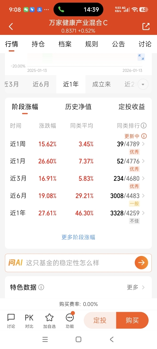 $万家健康产业混合C$真的强啊!今天大盘不好,以为要中期调整了,没想到又涨了,近