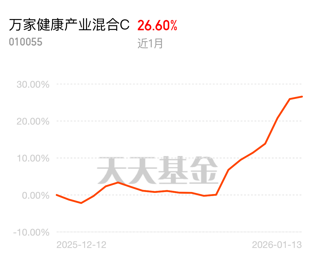 今天医药板块继续上涨了,医药开始发力了,现在投性价比挺高。万家健康产业最近表现不错,近一一个月涨26%,人口老龄化刚需,业绩增长比较明显!每次调整都可以继续投资起来了,可以进一步降低投资成本的!值得我们定投看看。长期收益还是不错的!