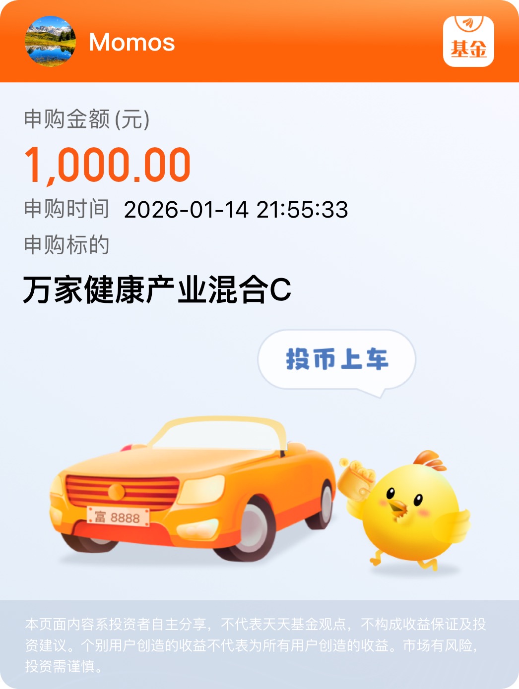 今天创新药继续涨!抓紧布局$万家健康产业混合C$ 。连涨9天也是我没有想到的,近一周涨了14个点,创新药基金里翘楚了,创新药可能是下一个商业航天,真龙头有机会起飞,赶紧跟上