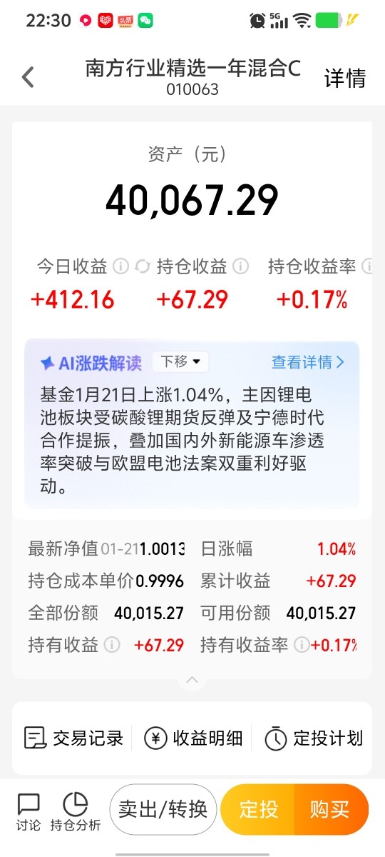 $南方行业精选一年混合C$终于红了