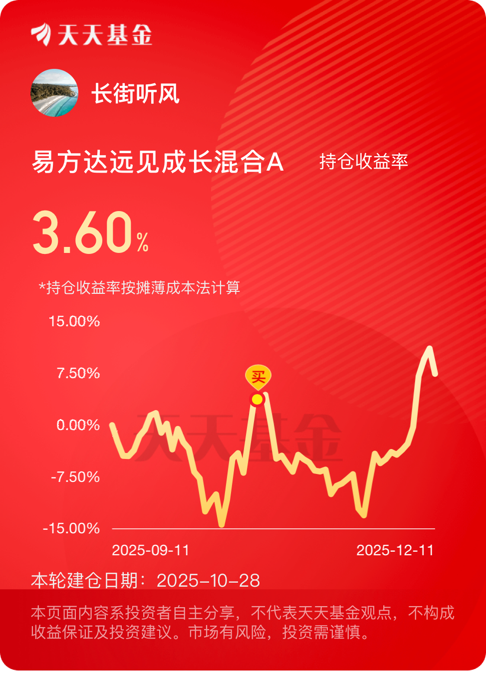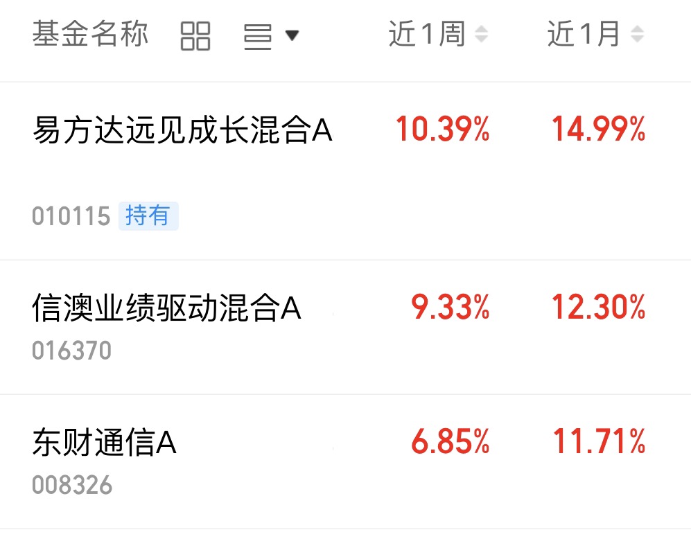 今天大盘低开高走,早盘先跌后稳,午后慢慢往上拉,三大指数全都翻红,市场情绪明显好转。CPO带头涨,科技板块开启反弹行情,热度慢慢起来了。我持有的$易方达远见成长混合A$ 跟着涨,目前持有收益率3.60%,基金经理前瞻眼光准,十年都能精准抓成长机会,近一个月涨幅14.99%,近半年涨幅超91%,业绩比同类好不少,后续继续拿着,稳稳把握这波赛道红利。