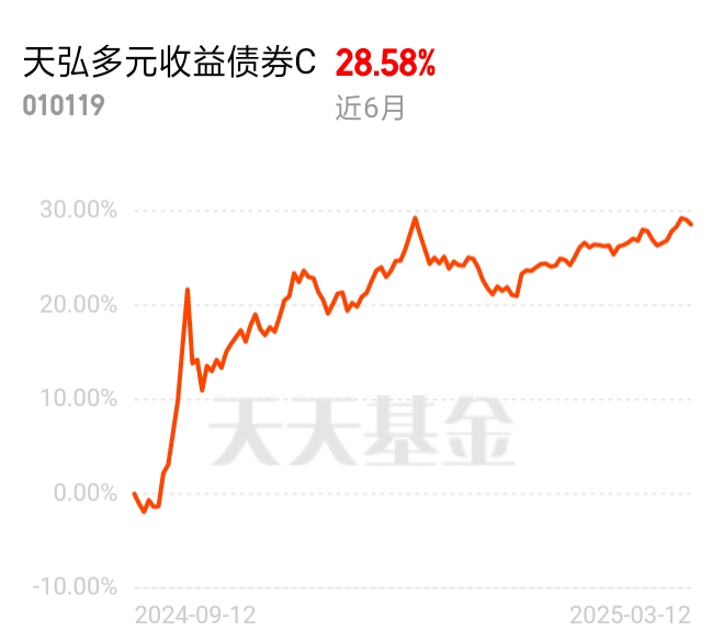 天弘多元债券收益C作为一只债券型基金,其预期收益和风险高于货币市场基金,但低于股票型基金和混合型基金。在这样的市场环境下,债市回暖利于其净值提升。从它自身持仓看,有一定比例股票持仓,若股市后续配合,也能带来额外收益。并且它近1个月收益率2.16%,同类排名31|254 ,近6个月收益率25.74%,同类排名11|237,业绩表现不错。不过,当前债市调整虽短期回调动力衰减,但仍有不确定性,比如宏观经济数据变化、货币政策走向等都会影响债市。我觉得天弘多元债券收益C是个不错的投资选择,但投资时还是要结合自身风险承受能力和投资目标,不能盲目跟风。@天弘基金