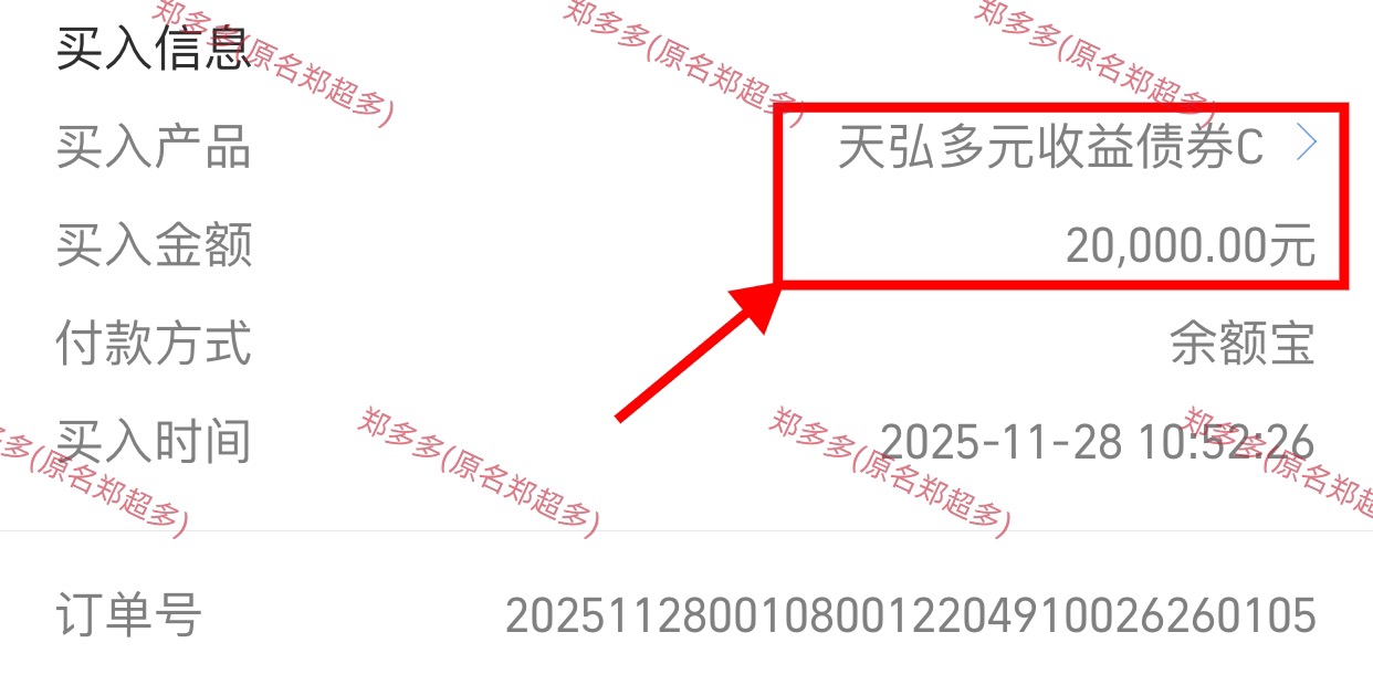 毕竟从过往表现来看,这只除了在回撤后的修复能力不错外。即使近期回调后,该基在近6个月依旧上涨了12.92%,近1年上涨了16.83%,业绩表现有目共暏,不等了,我个人继续入手20000元$天弘多元收益债券C$ ,期待多多收蛋。