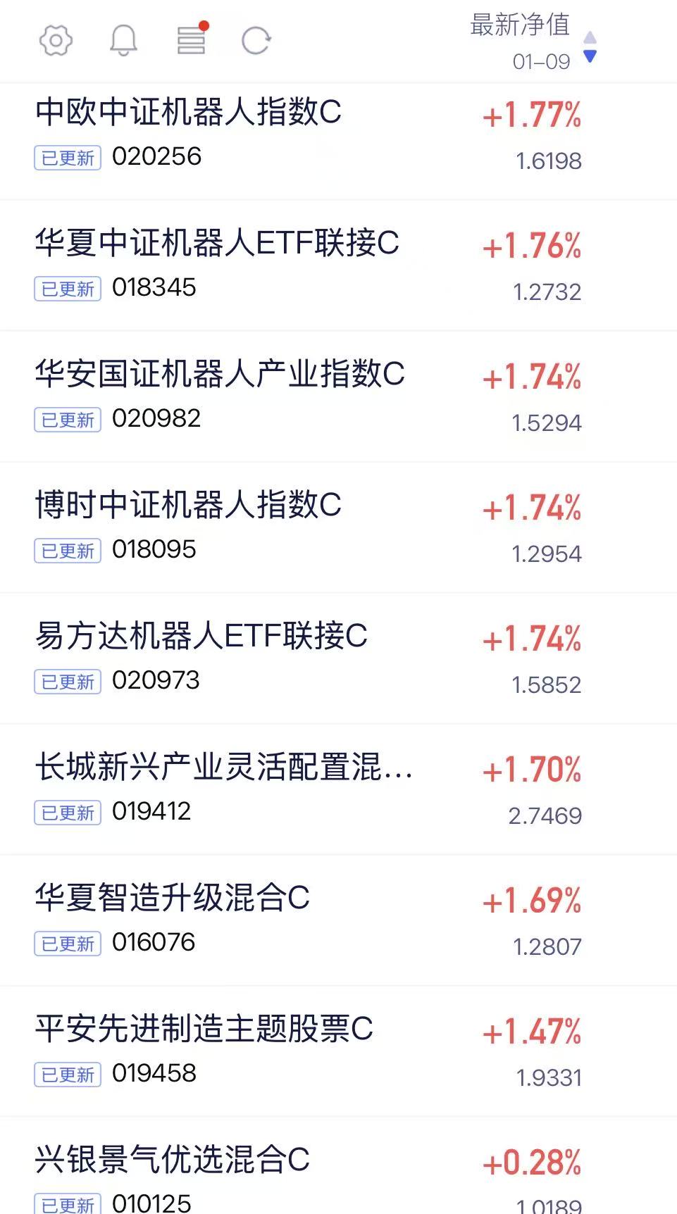 $中欧中证机器人指数发起C$ 上涨1.77% 每次都能跑赢指数呢长期下来超额不少