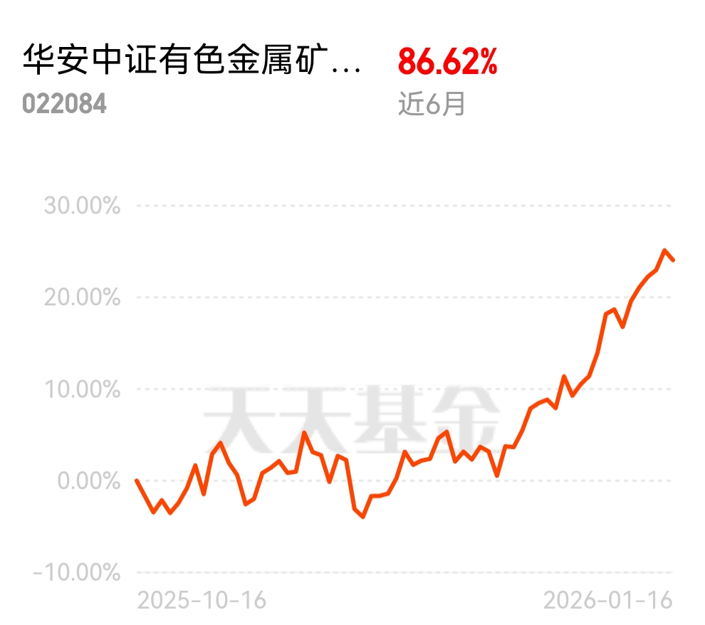 震荡市的显眼包,$华安中证有色金属矿业主题指数发起式C$ 近 6 月涨 86.62%,纯有色布局,稳稳拿捏资源行情
