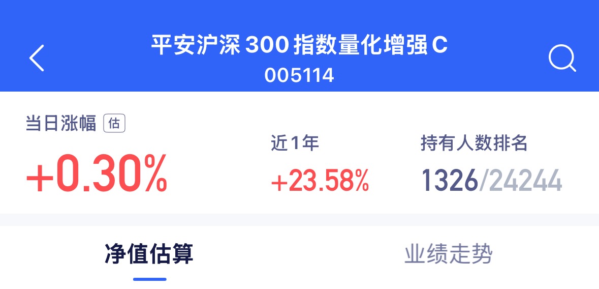 $平安沪深300指数量化增强C$估值上涨0.30%表现给力哦!