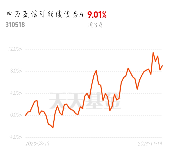 最近大家投资都求稳,可转债基金因为有债底支撑,还能享受股市上涨红利,备受关注。申万菱信可转债债券A表现稳定,近3个月收益有9.01%,让你的钱既安全又能实现可观增值。