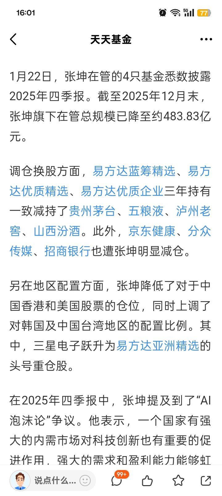 易方达010198为什么抱着酒和药不放?五年了,跌了快百分四十!是不是冯某某某故