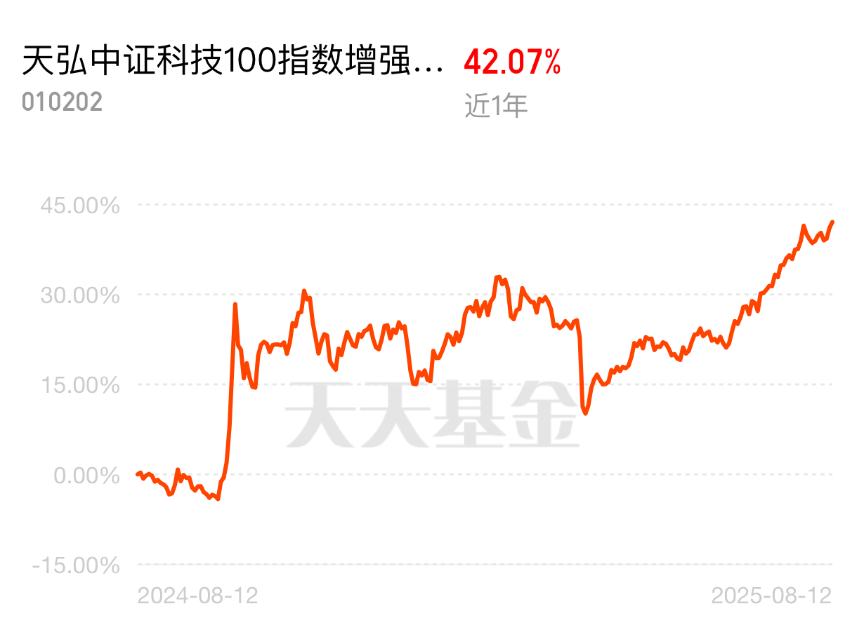 中证科技100指数覆盖电子、医药生物、电气设备等科技细分领域,成分股为研发强度高、盈利能力强的科技龙头公司,行业分布均衡。$天弘中证科技100指数增强发起A$