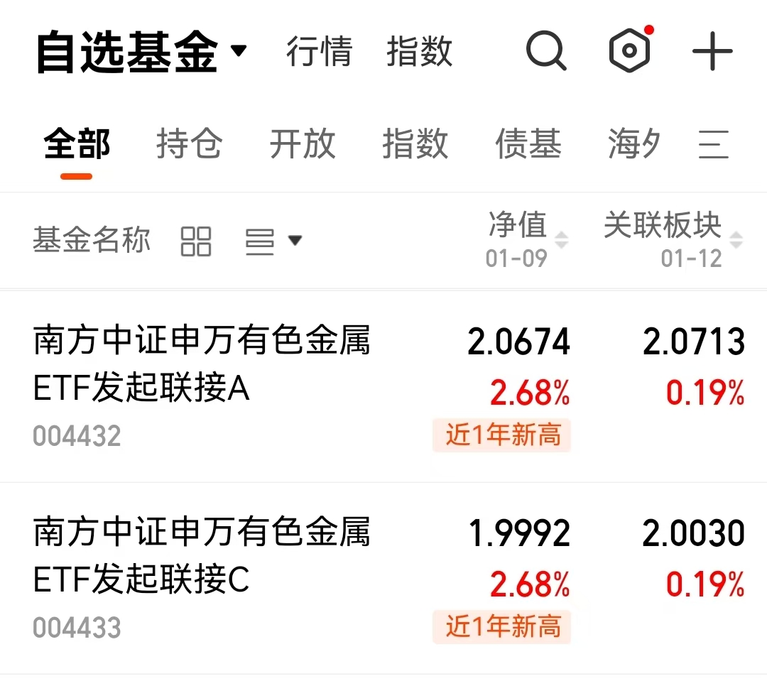 今天又买入了$南方中证申万有色金属ETF发起联接A$(004432)。市场总是在前行,这两天有色板块不错。在我看来,现在或许只是一个更长远趋势的开端,后续的发展可以保持关注。#2025超额关键词#