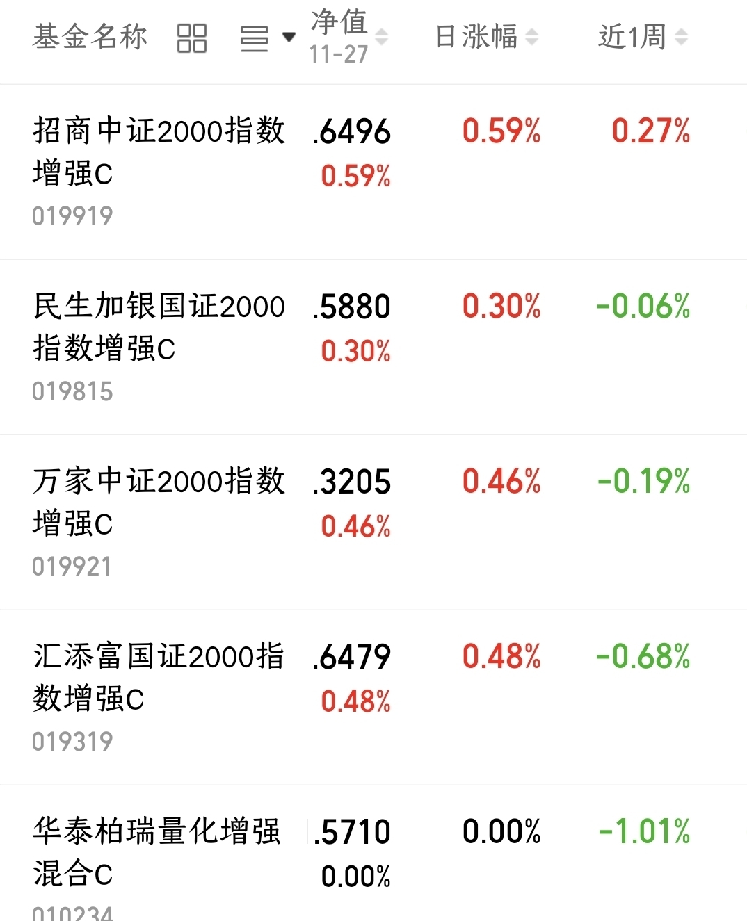 $民生加银国证2000指数增强C$ 近一周回调0.06%