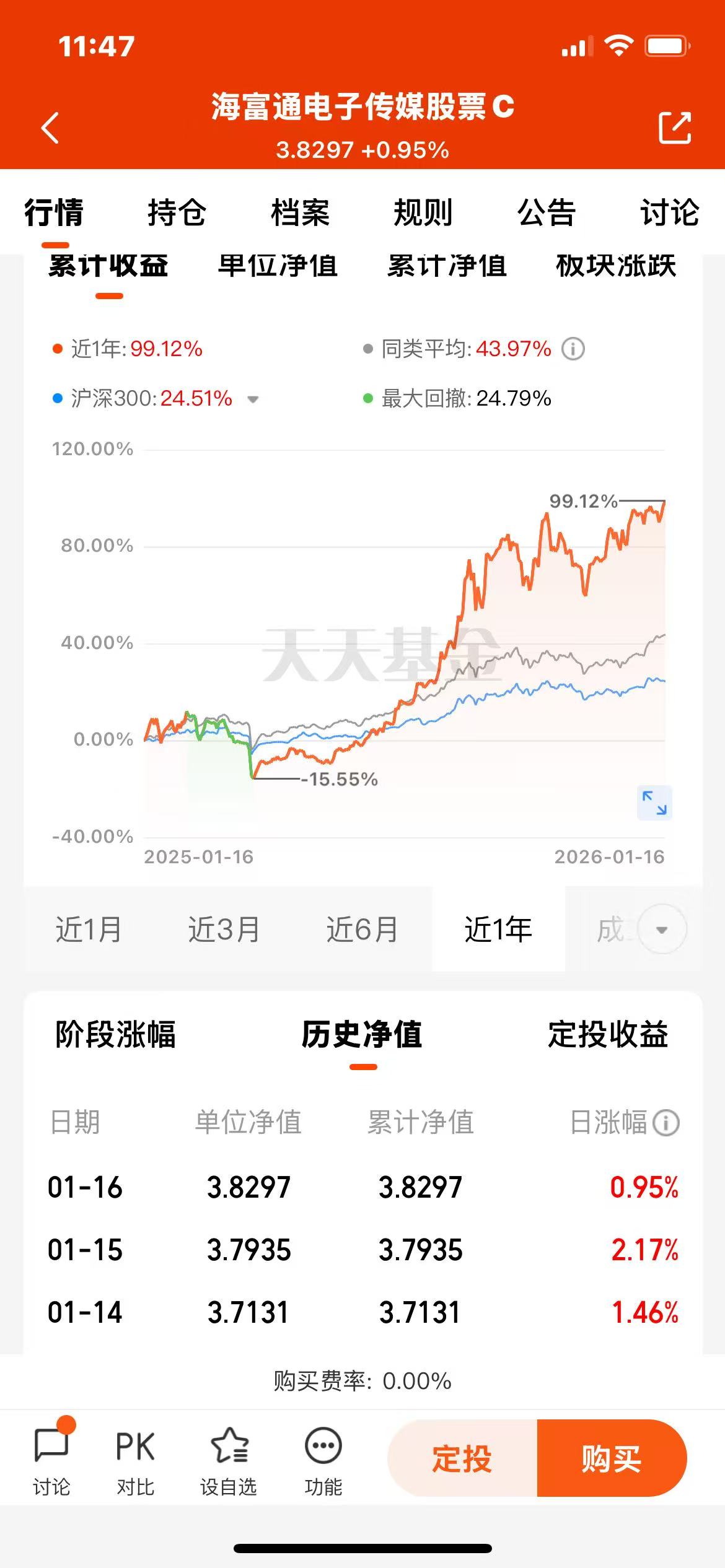 近半个月上涨76.22%,近一年上涨99.12%;超额市场收益不少!