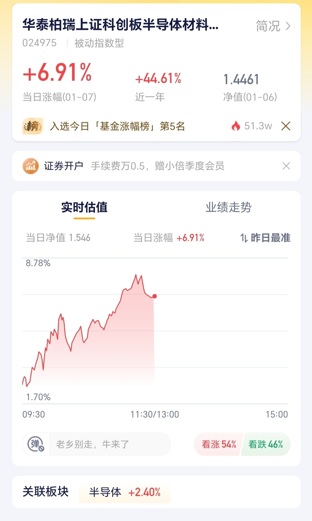 科创半导体设备板块今天彻底燃了,半导体存储的上行周期势头超猛,科创半导体更是一路领跑市场。华泰柏瑞直接跟着板块起飞,单日涨幅冲到6.91%,还挤进了基金涨幅榜第五名,近一年收益也有44.61%。不过这基金是中高风险,行业估值也在高位,咱布局的时候别贪多,小仓位试试水更稳妥。#存储概念迎烈火烹油!英伟达新方案引爆#