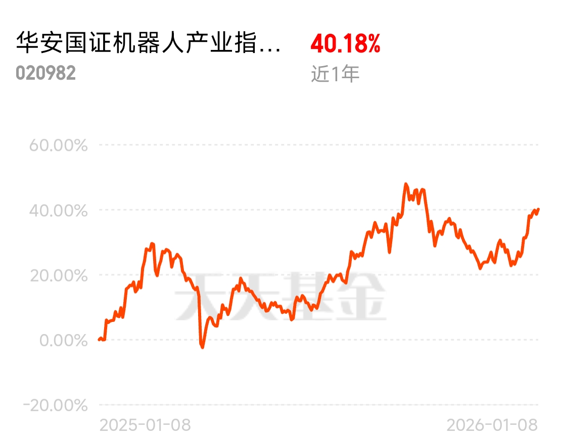 机器人赛道彻底火了,$华安国证机器人产业指数发起式C$近一年涨超40%,0申购费
