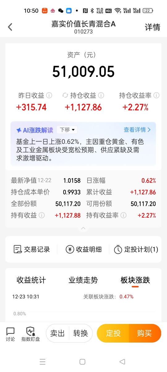 大家给算一下,这只基金是我五万块钱整整四年获得的盈利,这也比存在银行收益高吧?