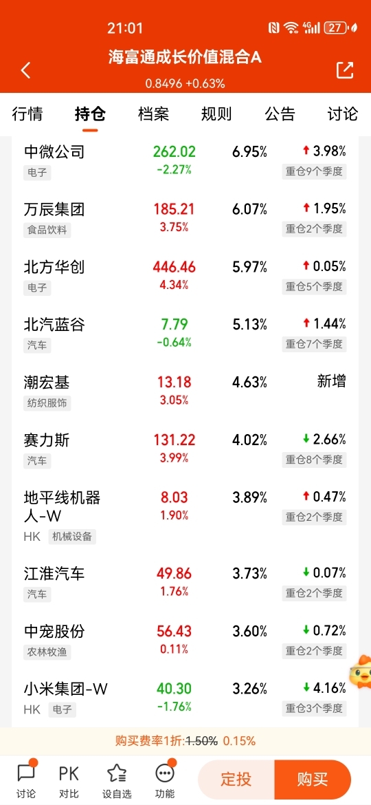 今天净值0.63%,这家伙起码吃了0.8%,好像海富通才是投资者吗?
