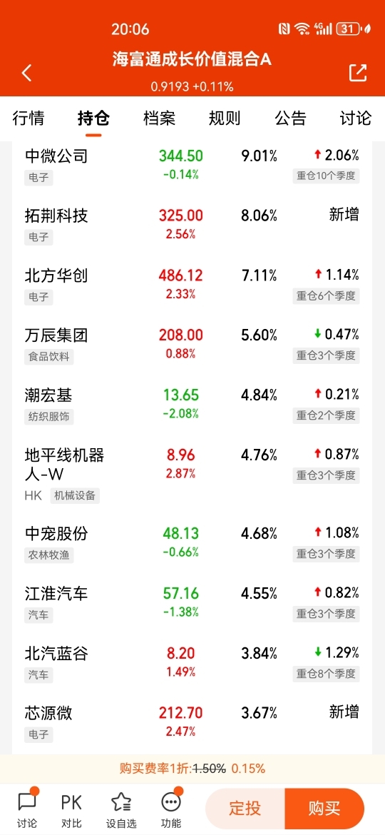 今天终于涨了但净值才+0.11%,过年钱又被海富通吃了!