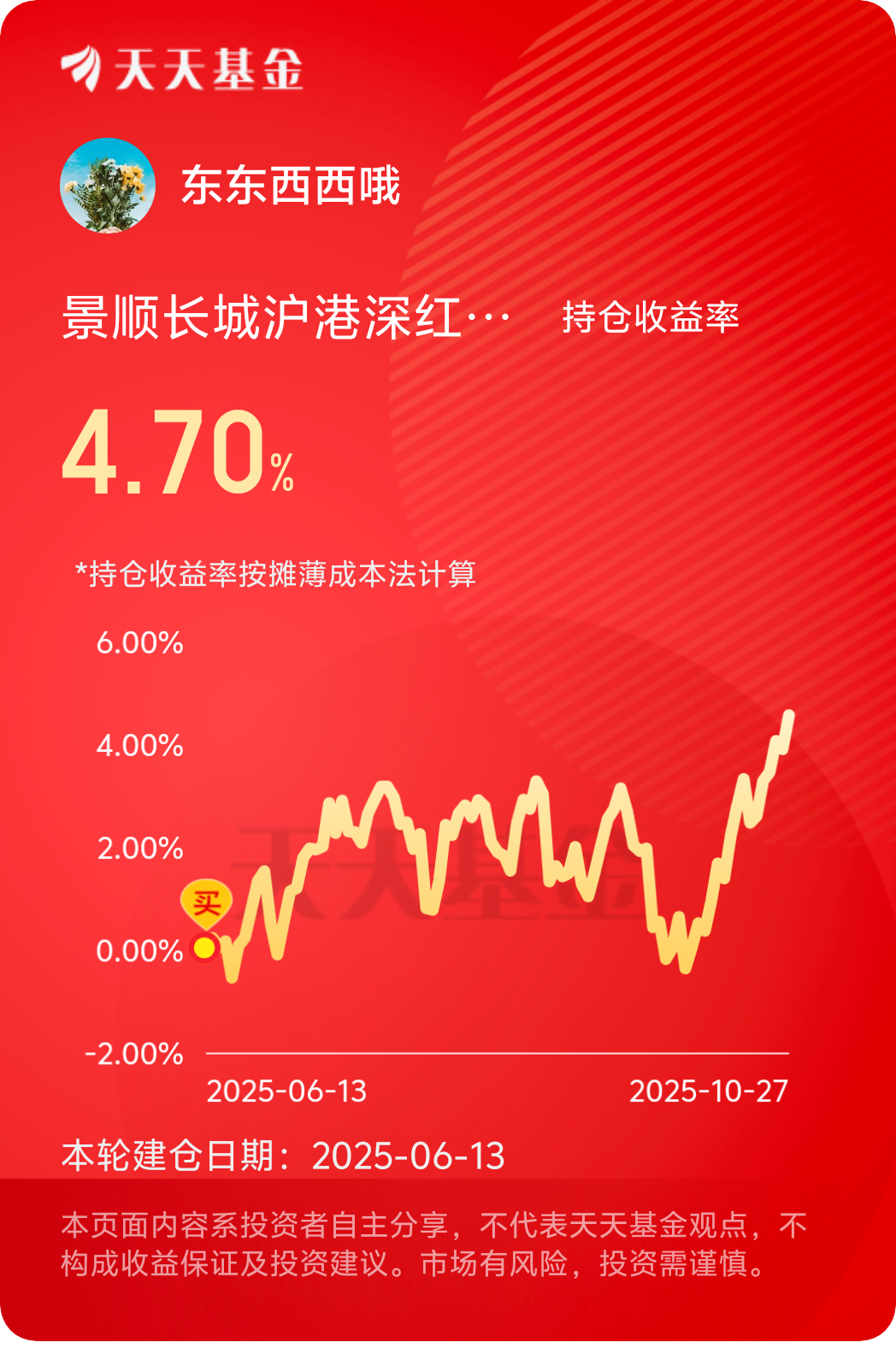 现在阶段科技震荡、但红利近1年新高,$景顺长城沪港深红利成长低波指数E$ #晒收益#