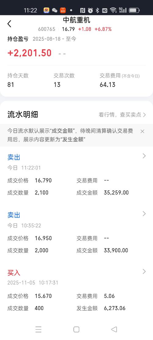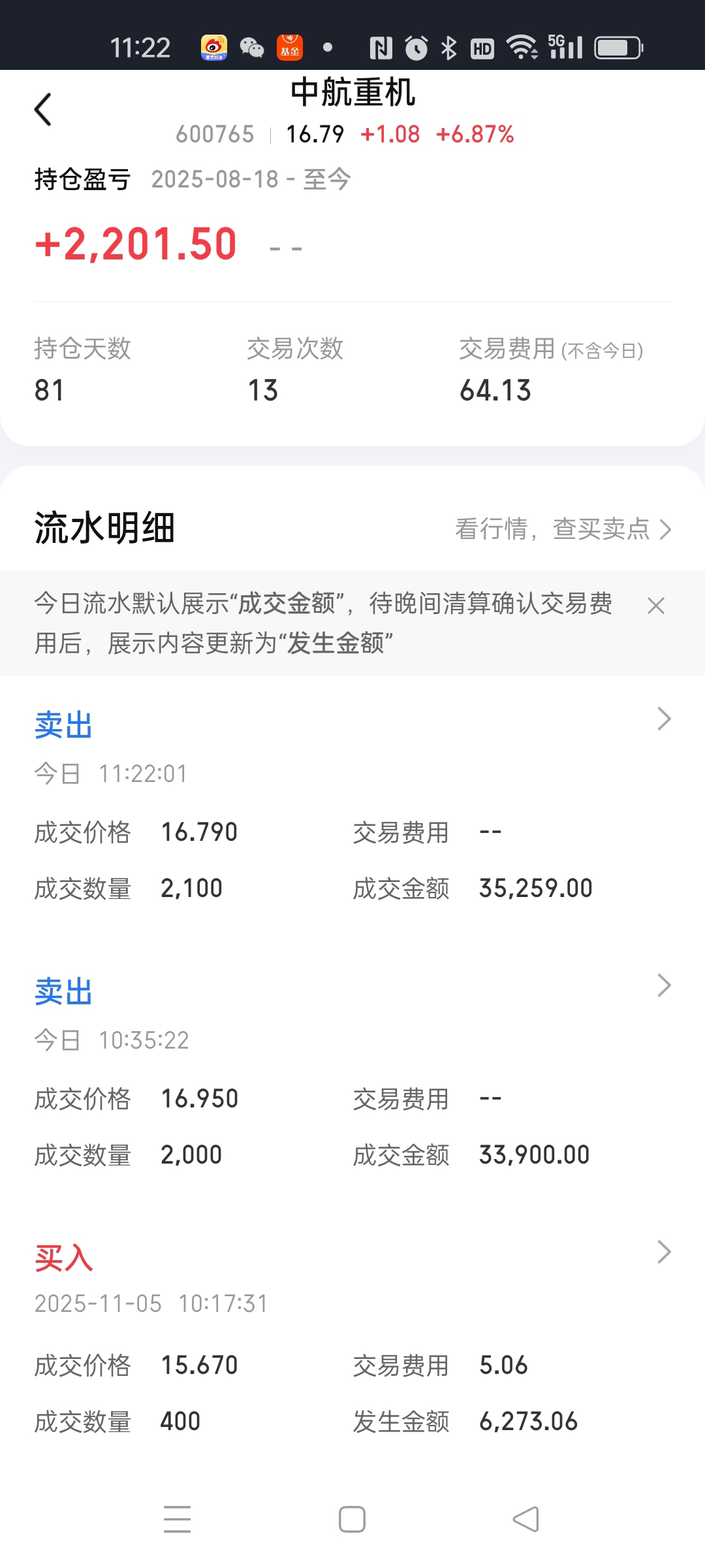 中航,最后是赢利2200元,持仓81天,今天都出来了,主要是今天涨幅偏大,乖离率