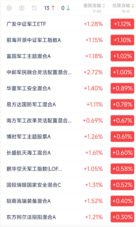 军工行业基金估值盘后快报,收益全览,优劣自明