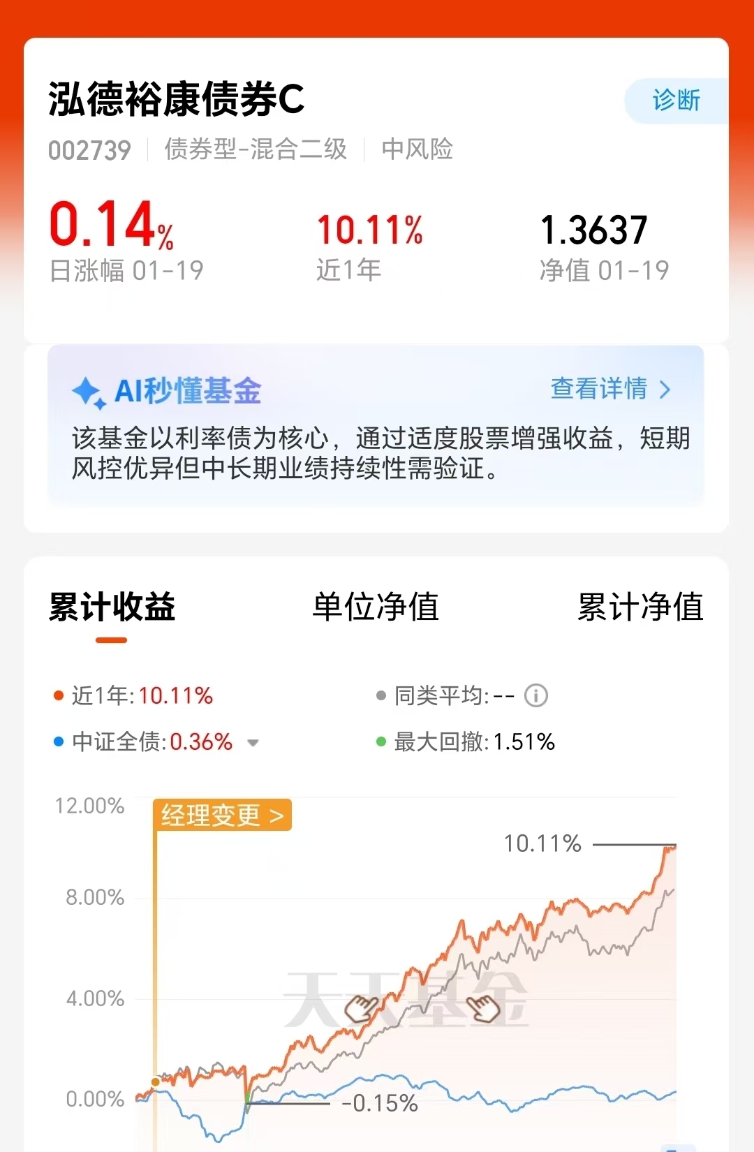 泓德裕康做为中波稳健固收+有着不可替代的极致性价比,今天又收14个大蛋,牛啊!