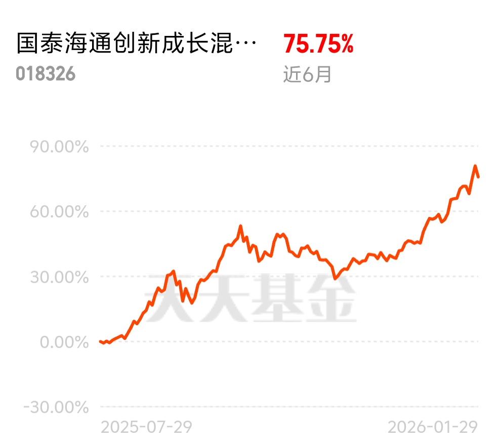 现在半导体彻底反攻了,想换主动半导体基的别犹豫,国泰海通创新成长混合发起 C 太合适了,近 6 月涨 75.75%,走势稳当还抗跌,比板块整体表现更出色,值得布局