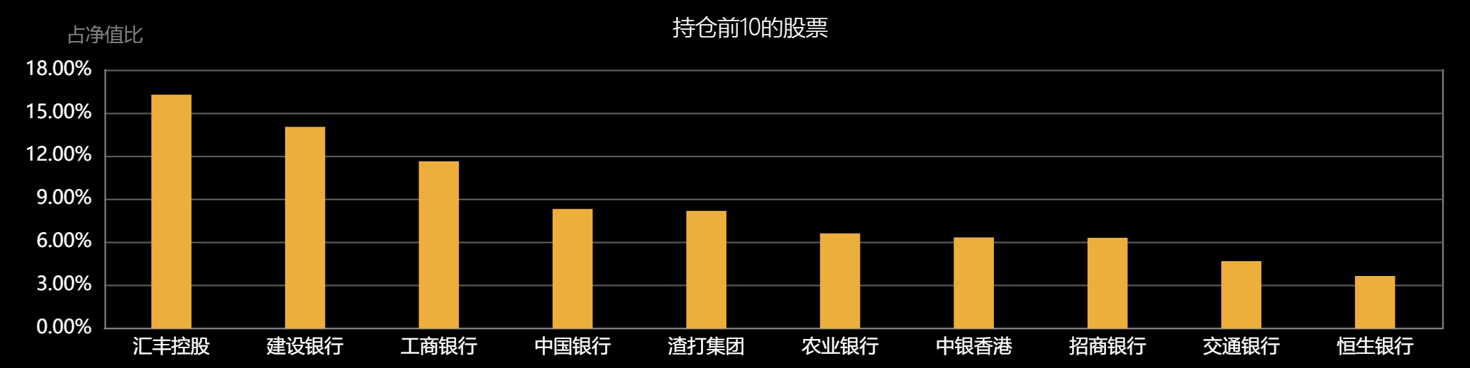 那么,为什么推荐$鹏华香港银行指数(LOF)C$(010365)?这只基金有几个核心优势。第一,它紧密跟踪中证香港银行投资指数,一键打包汇丰控股、建设银行、工商银行、中国银行等20只港股通银行股,前十大权重股合计占比84.38%,都是行业龙头。