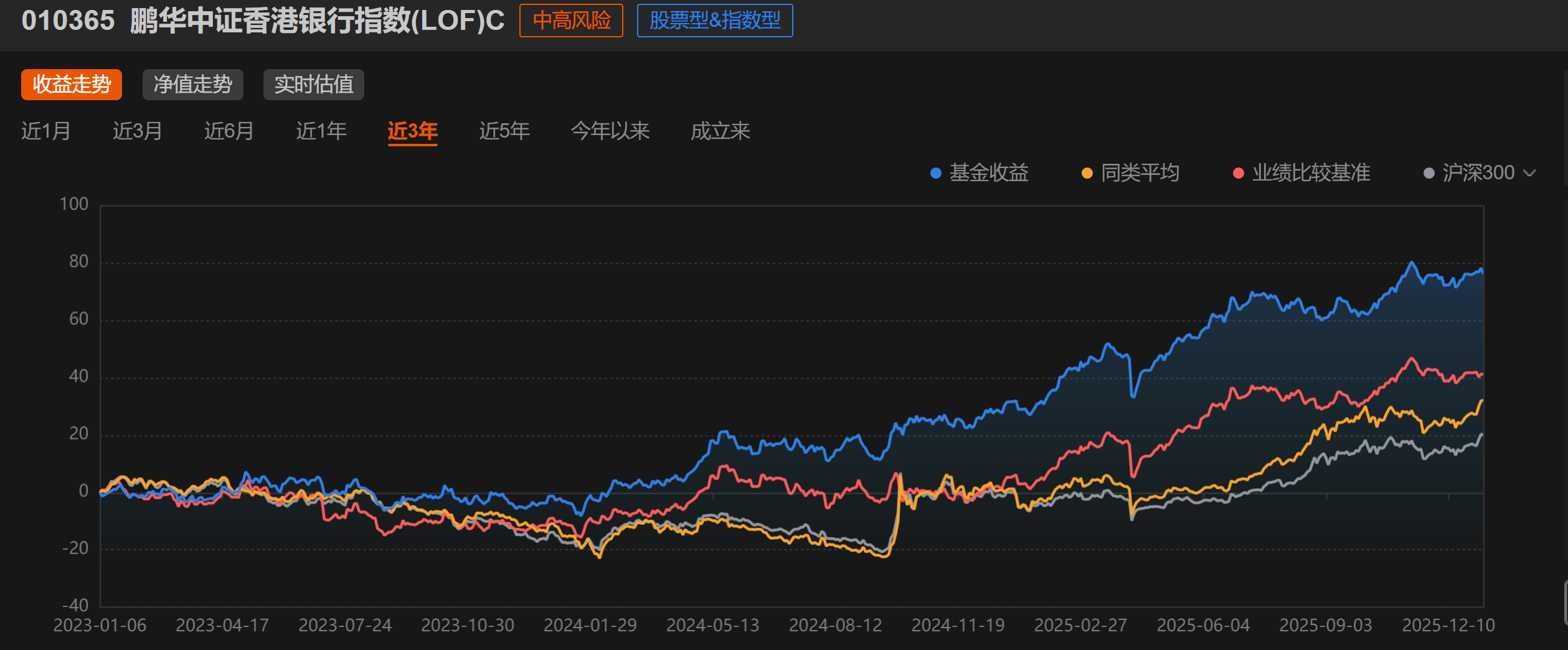 最近市场震荡上行,不少朋友都在问:现在该投什么?我的答案是:遇事不决香港银行。为什么这么说?咱们先来看看香港银行板块的近期表现。2025年全年,香港银行指数表现亮眼,全年累计涨幅达到28.9%,跑赢恒生指数3个百分点。特别是近三年,银行板块更是强势崛起,$鹏华香港银行指数(LOF)C$(010365)近三年累计上涨76.41%,在同类基金中排名靠前,同期沪深300仅19.58%。这种表现背后,是资金持续流入的支撑——南向资金连续三年增持银行股,最高单日流入超过20亿港元,保险资金2025年对银行股的投资更是增加了1600亿元。这些都不是短期炒作的资金,而是看重银行股稳定分红和长期价值回归的长期配置资金。