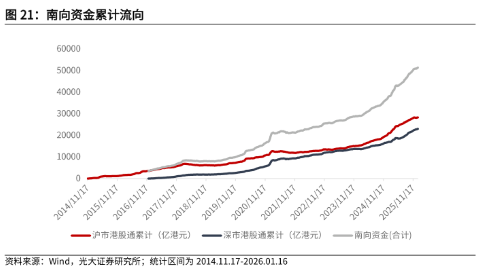 同时,南向资金对H股金融板块的持股比例持续提升,截至2025年三季度,南向资金对银行、保险、券商等金融板块的持股比例已高达16%-62%,这强化了A股市场的季节性规律对H股的影响,一季度通常为保险销售旺季、信贷投放高峰和交易活跃期,历史数据显示约43%的全年寿险保费在一季度收取,约41%的全年新增贷款在一季度发放,自2015年以来,一季度日均成交额平均环比增长约22%,这些季节性因素有望为香港银行板块带来支撑。另外,香港银行业资本充足率保持高位,截至2025年三季度,香港所有认可机构普通股权一级资本比率、一级资本比率、总资本比率分别为19.9%、22.3%、24.4%,均达自2013年有数据记录以来最高水平,流动性覆盖比率和稳定资金净额比率也远高于监管要求,稳健的经营基础为后续发展提供了保障。