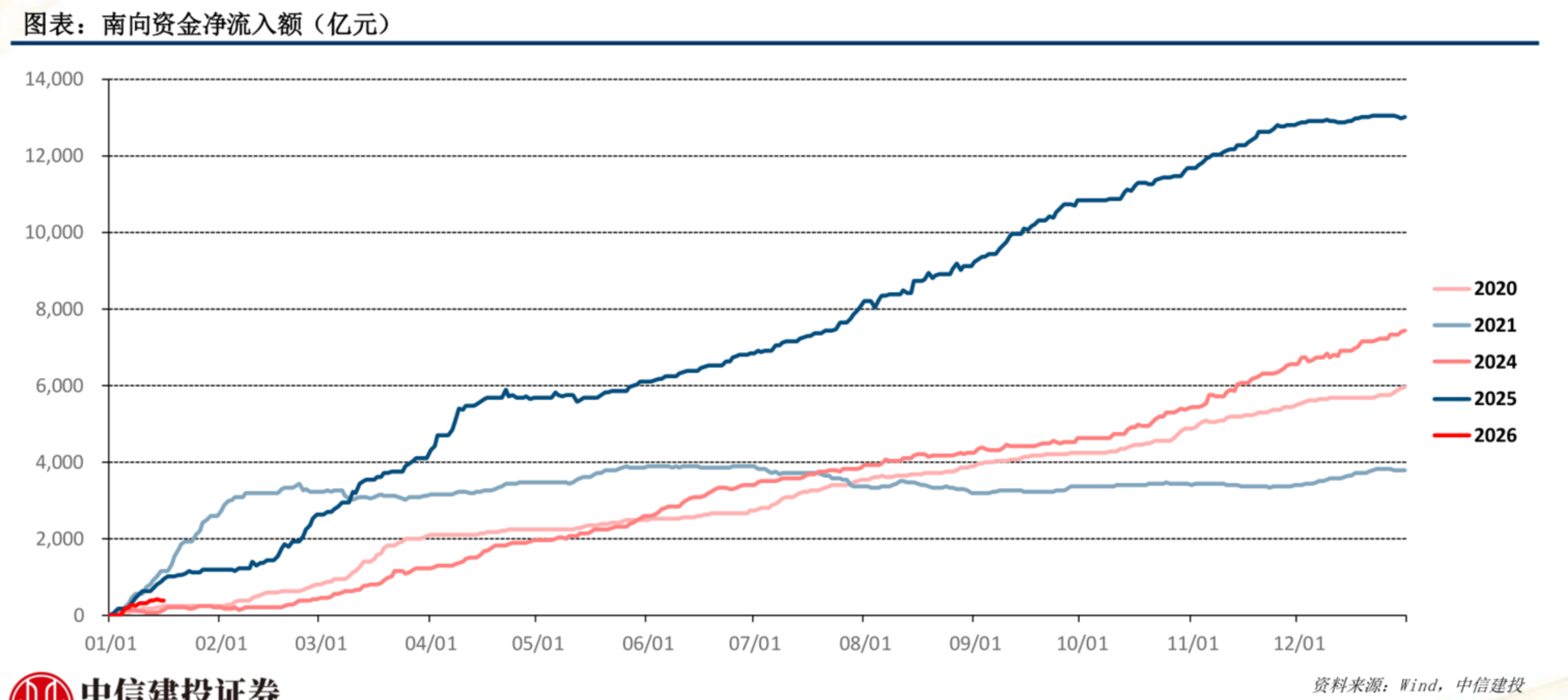 消息面上,政策环境与资金流向均偏向积极。香港金管局表示最优惠利率(P)已处历史低位,进一步下调空间有限,这有助于稳定净息差预期。资金层面,险资持续增持H股银行,2025年举牌达41次,其中33次投向H股银行;南向资金全年净买入超1950亿港元,建设银行H股、招商银行H股等成为重点配置标的。值得注意的是,历史数据显示春节前银行板块胜率超80%,而当前险资“开门红”配置需求与信贷“开门红”数据预期形成共振,进一步强化板块短期韧性。