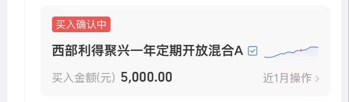 $西部利得聚兴一年定开混合A$ +5K,纯债今年震荡不定,大盘持续走强,这段时间确实还是要大蛋基比较香,这个月的收益大部分都是固收+贡献的,不过股票的话个人就不打算去追了,因为之前也有说过,这个波动太大了,踏空起来会比较难受,我继续补仓一笔西部利得聚兴一年开放混合A,这是一只低波动固收+,持仓大头是利率债为主,搭配了10.37%的可转债+2.86%的股票在大盘好的时候获取更好的收益。不知道小伙伴发现没有,其实频繁操作有时候容易追涨杀跌,我看了下手里几只快到期的封闭基,收益率都跑赢了开放基,因为持有途中卖不了,可以管住自己的双手,聚兴近一年下来涨幅17.80%,业绩也确实能打,趁着还没关门再定投一笔。
