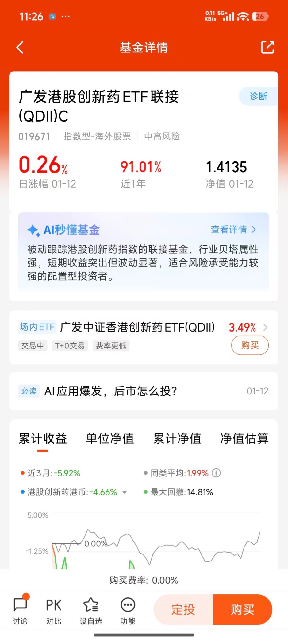医药行情还是年有机会的,特别是创新药,现在处于低估值阶段,弹性大,这个月强势反弹,我加仓了广发港股创新药,近一年也有91%+的涨幅很高