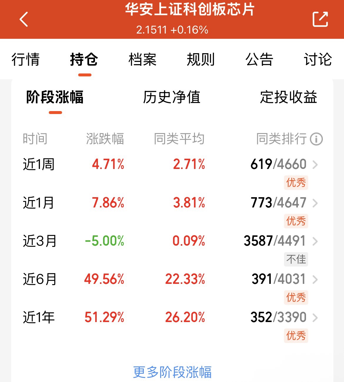 半导体风口来了,$华安上证科创板芯片ETF发起式联接A$单日涨0.16%,近1年